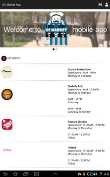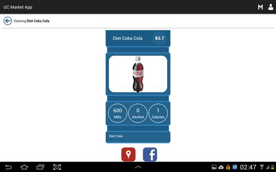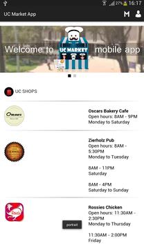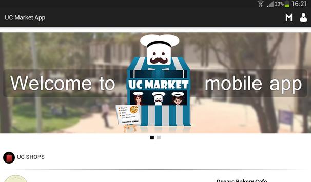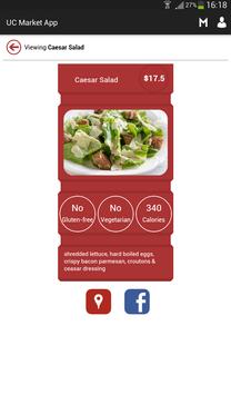UC Market mobile application will help people to look up the menu of each Fast-Food shops that are located on University of Canberra campus. With a user friendly mobile interface it will show the audience valuable data information such as the prices of each food and drink, Food description, if its Gluten free, if its vegetarian and the Calories count of each item that the Shop's offer.