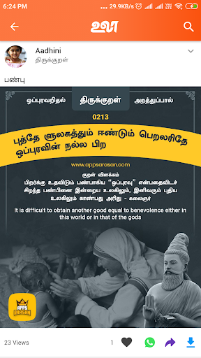 Get a best Daily Thirukkural with Meaning.