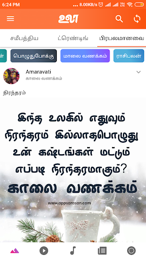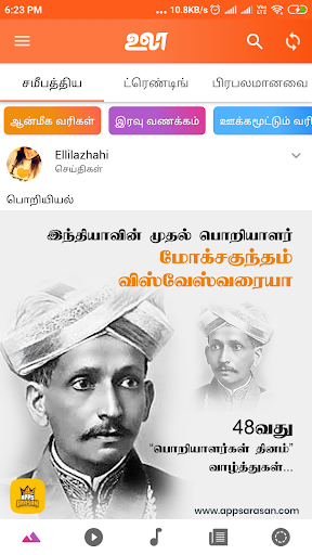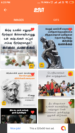 In our ULAA App available Tamil language best for our tamil peoples. In Ulaa app easy to swipe and you have see attractive UI icons of Images, Videos, FM Players, News and trending GIF files.