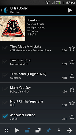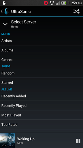 UltraSonic is a streaming music client to be used with Subsonic media streamer server software on Ice Cream Sandwich (4.0) and higher devices. It is a fork of the original Subsonic android client and adds enhancements not found in the original app. Media Button/Controls:Lockscreen playback controlsNotification playback controlsNow playing notification within the app for quick accessbluetooth playback (A2DP)Bluetooth metadata (AVRCP)Playback Enhancements:Chat supportGapless playbackImproved quality of playback while streamingImproved offline browsingEnhanced playback settingsExpanded search settingsSupport for more serversInterface Improvements:Revamped UI workflowPull down to refreshHigh quality album artNow playing indicator on all activities. This gives quick access to play/pause the track. Clicking on the album art takes you directly to the album. Clicking on the notification will take you to the "Now Playing" activity. Swiping down on the notification will hide it until the next playback change. Swiping left/right will go to previous/next track in the playlist. This notification can be disabled in settings.Features Specific to Subsonic API 1.7.0 and higher:bookmark supportGenre support (Subsonic 4.8+)ID3 tag method supportStarred album supportStarred song supportAlphabetical by artistAlphabetical by album