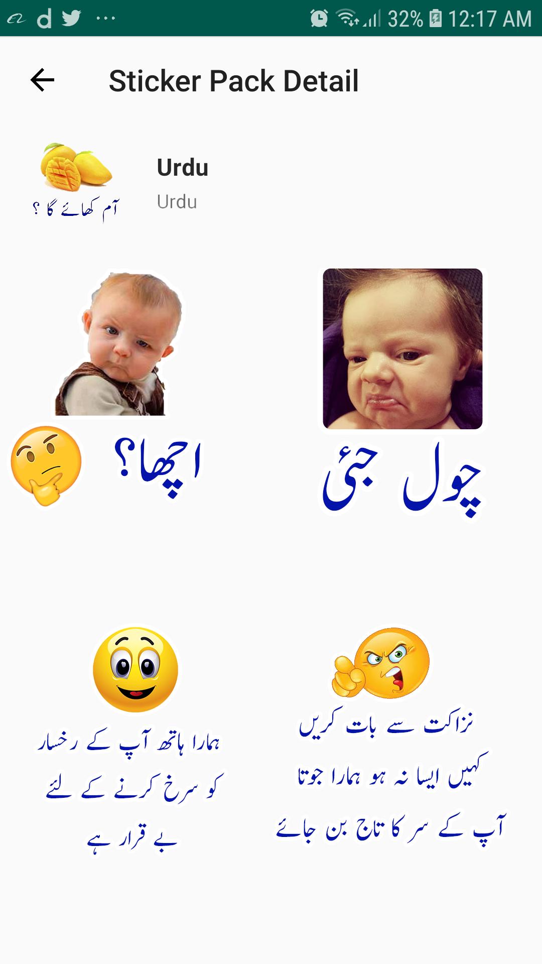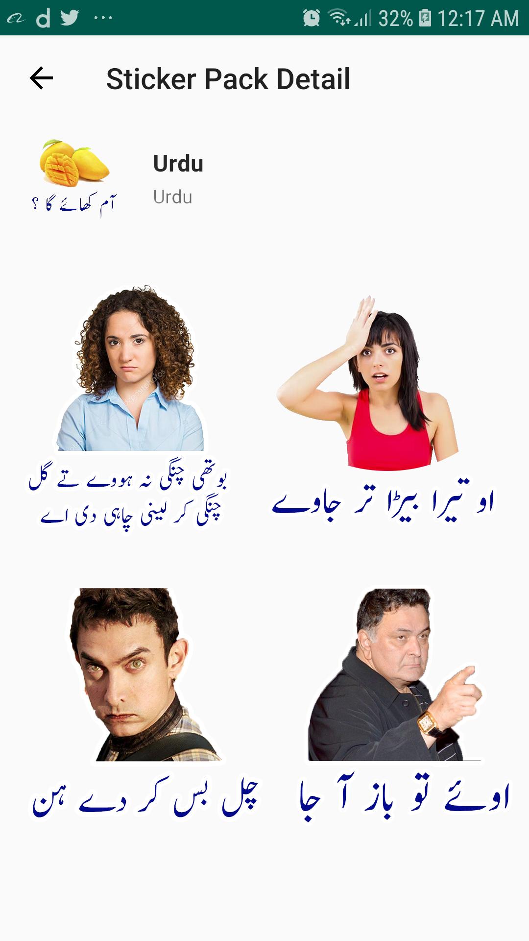 This app contains best funny Urdu and Punjabi dialogues that we use in our daily life. You can use these funny Urdu and Punjabi Words in WhatsApp stickers, and can make your conversation meaningful. There are most funny and famous Urdu and Punjabi dialogues that we have converted in WhatsApp stickers. In these days WhatsApp stickers have a significant role in our daily conversation on WhatsApp. These stickers make our conversation meaningful. So we have captured the feelings in WhatsApp stickers.