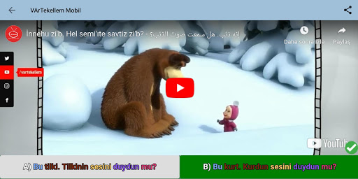 En primer lugar, intentamos ver y comprender nuestro video sin subtítulo. Luego, mire el mismo video con el subtítulo árabe y descubra qué palabras malinterpretamos o no podemos entender. La palabra kamus se llama la palabra traducida (vemos los equivalentes turcos haciendo clic en las palabras) movimiento y oraciones sin movimiento, la parte y las oraciones de voz y las oraciones de voz,