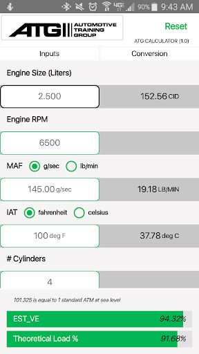 VE Calculator for vehicle driveability diagnosis. Calculate expected vehicle engine load and volumetric efficiency from RPM, Mass Air Flow, Intake Air Temperature, and barometric pressure. From the automotive training team at ATG Training, Inc. #automotive #tuning #VE Calculator #ATG Training #Volumetric Efficiency #MAF #Horsepower