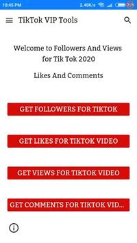 VIP Tools - Free Fans Followers For Tik Tok is a 3rd party app that not affiliated related in any way to the trademarks of TikTok or Musical.ly app...