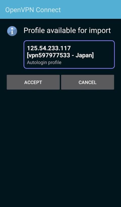- Click on one item, will enter ovpn profile import interface, click on "Accept" button