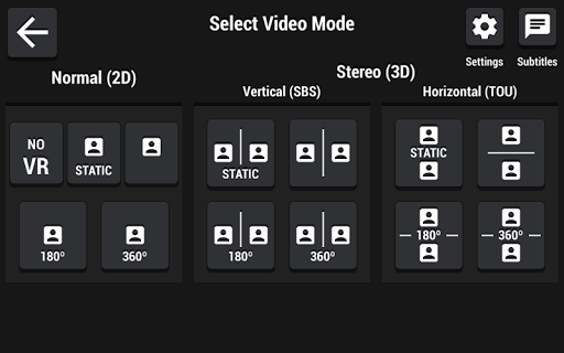 - All video modes supported, enjoy any video with your virtual reality headset. 2D or 3D, 180º or 360º, side by side, over under or play like a regular video player with the No VR mode.