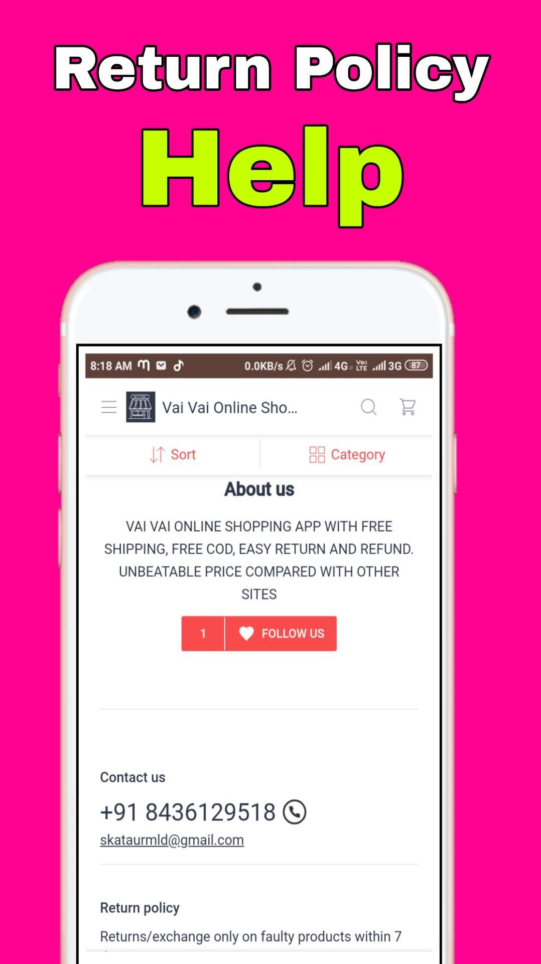 Vai Vai Online Shopping App Return policy.