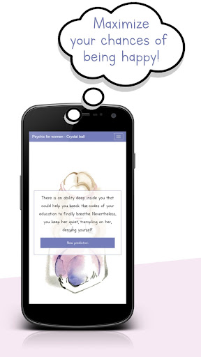 How does it work? All you have to do is touch the screen of your phone, at the level of the psychic ball, and it will offer you a personalized prediction about your near or distant future. Designed for women and for them alone, you will discover certain information, sometimes vague, sometimes very precise, about what can happen to you and your family. You will become the master of your destiny, especially when it comes to making difficult decisions, when doubts overwhelm you or when you need to protect those you love.