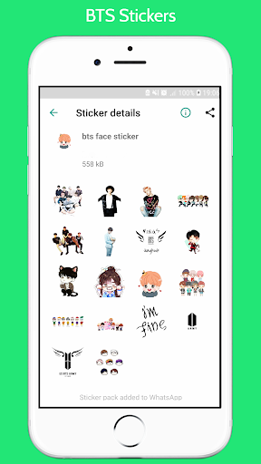 WAStickerApps for BTS Stickers for Whatsapp is an amazing app that's allow you to get your favorite stickers for the amazing BTS members.