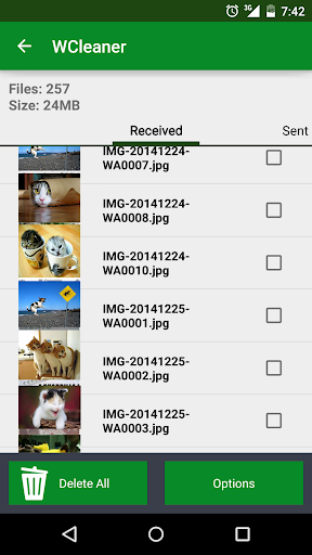 WCleaner is a little tool for cleaning WhatsApp files that are stored in your phone.