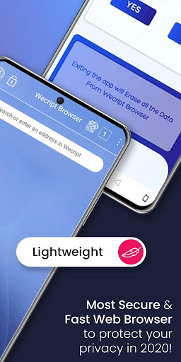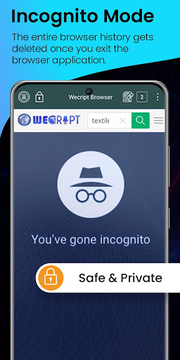 Safe!Secure! & Private! Wecript - Incognito Browser is one of the best web browser applications for Android users combining the best of the best features to give you safe and secure browsing experience. Wecript Incognito browser allows you to explore the web in private, hides your browser history, favourites, and downloads from the world. The entire browsing history gets deleted once you exit the browser application.