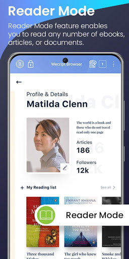 : Often, disruptive ads and pop-ups can ruin the experience of reading articles and blog posts on the web. Wecript Browser with its Reader Mode feature enables you to read any number of ebooks, articles, or documents without being distracted by ads or other unwanted elements.