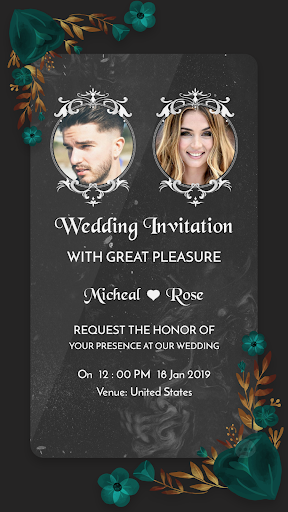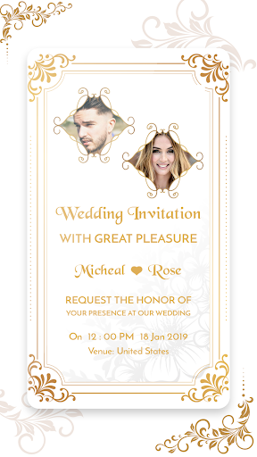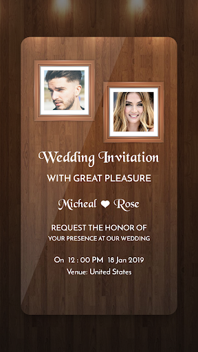 • With the help of wedding invitation maker app, you can also add photos of bride and groom on the card