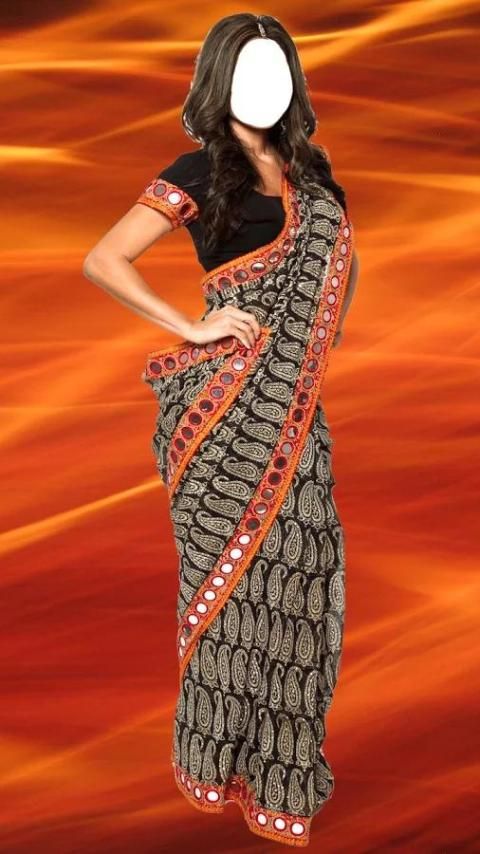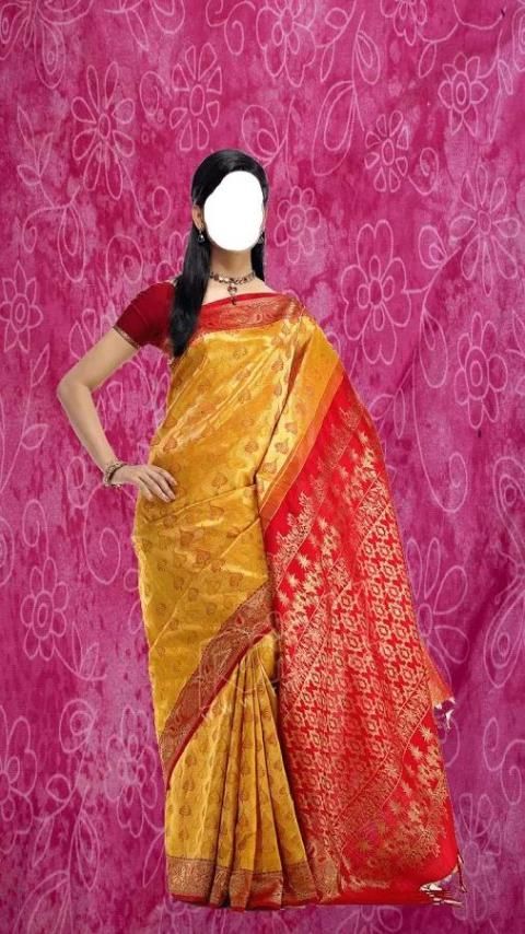 Bridal sarees are fabricated with beautiful crafting such that women look wonderful carrying the grace of a sari. If you’re looking for a range of new colors you’ll find in this saree photo maker a baby pink, magenta, forest green, golden, rustic black, off white, beige and several other kinds of shades mixed with embroidery patterns. Download Wedding Saree Photo Montage free app for Android™ and play the best saree games for free!