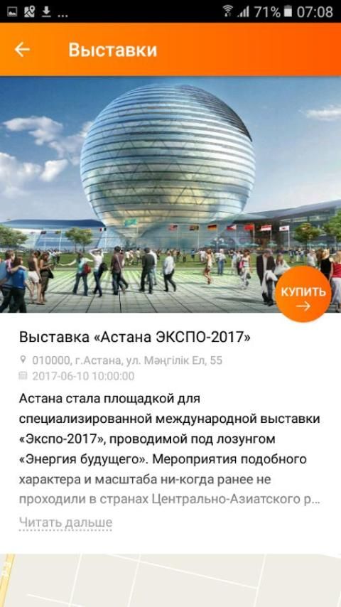 Meet with Astana with an official tourist's mobile application Welcome To Astana. Mobile Guide will get acquainted with all the sights of the city and be aware of all the upcoming events.