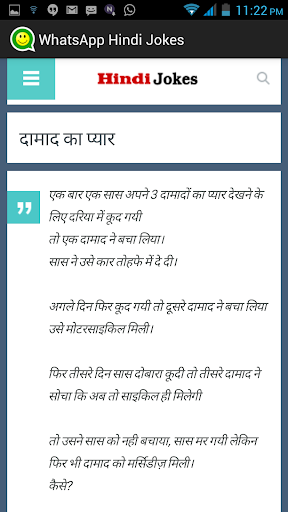 All Jokes in this app are in Hindi Text . So welcome to world of Jokes in Hindi