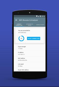 When you look at current connection, you will see some of the information mentioned above, but also IP address of your device, WiFi MAC address and link speed. And then there is the booster.