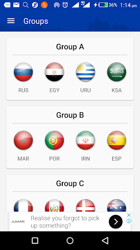 ✔ Alarm setting for each of matches in the 2018 World Cup.