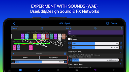 • Wotja Audio Engine (WAE) with Sample Player, 'Macro Oscillator 1', Reverb 2XL, Pitch Shifter plus many other synth & FX units
