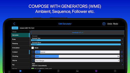 • 100s of editable generative music templates & Sound/FX presets