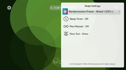 • Wotja Visual Engine (WVE) for visualizer, screensaver, mini games