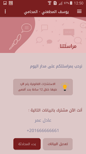Application to communicate with the Lawyer Legal Counsel Yousef Metany