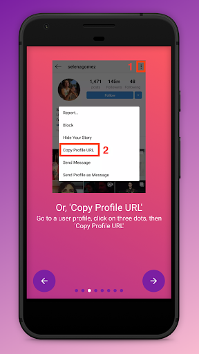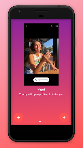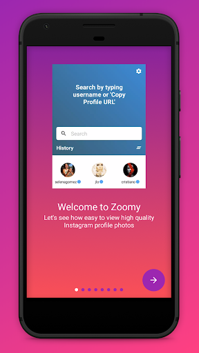 • 'Copy Profile URL' in Instagram, Zoomy will open HD profile photo for you