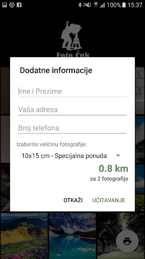 Nakon što instalirate aplikaciju, dovoljno je da izaberete fotografije za izradu, zatim izaberete format i popunite polja sa obaveznim ličnim informacijama , aplikacija će Vam odmah izračunati cijenu fotografija ( za sve Vas koji želite da fotografije budu dostavljene brzom poštom dovoljno je samo da čekirate polje kod kojeg piše "Poštarina" i troškovi slanja od 5.00 km će biti automatski dodati na cijenu fotografija ), pustite da Vaš telefon odradi ostatak i obavijesti Vas kada fotografije budu poslate .