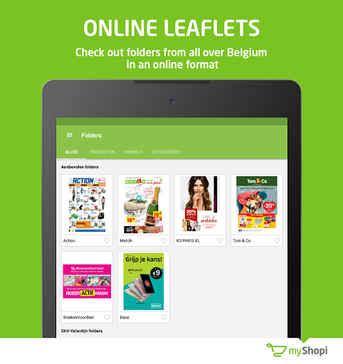 Swipe through folders from your favorite shops on your smartphone or tablet and cut out products with the digital scissors to add them to your shopping list. myShopi offers most Belgian retailer leaflets of Lidl, Aldi, Colruyt, Carrefour, Delhaize, Kruidvat, Gamma, Brico, Blokker, Media Markt and many more.