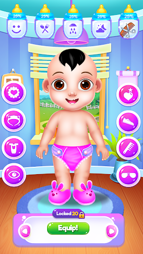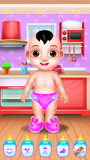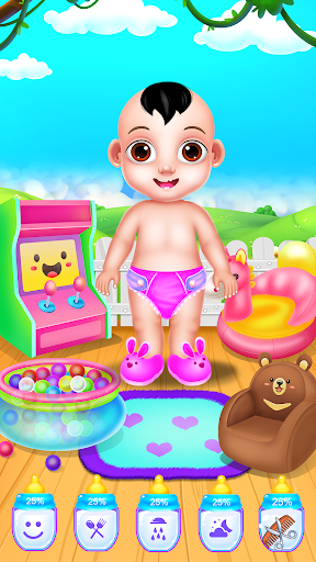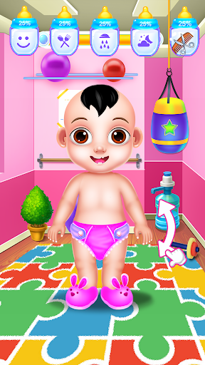 Spend a wonderful day with this cute baby boy and have different playful activities together. Once you click the play button of this baby game you will take responsibility for your kid's needs. Start his day and take him to the bathroom where you will make him a nice bubble bath. Make sure you will also clean him before he can get out of the bathtub. Use the shampoo and the soap to wash him well and then take your baby boy to the sports room. In there he will be doing some exercises and he will play some cool games. Help him stay active and move into the next caring step. Your baby boy requires feeding. Prepare him some delicious meals and serve them. Now that your boy has a full belly you can continue with the dressing part. The most exciting part is that you get to pick lovely animal costumes for him. You can choose to dress him up like a panda, or a bunny or any other available animals. Pick funny accessories to go with your baby look, like stickers or sunglasses or adorable matching hats. Once he's dressed he is ready to go in his playroom, where his favorite toys await. The game has a pretty cool incorporated mini-game step too. Here you get to mix and match candies and win multiple points. Have fun with the candy game and keep playing until you become the best. After you've reached the higher score you can take your baby boy to sleep so he can get some rest. Let him recharge his energy for another beautiful day you could spend together.