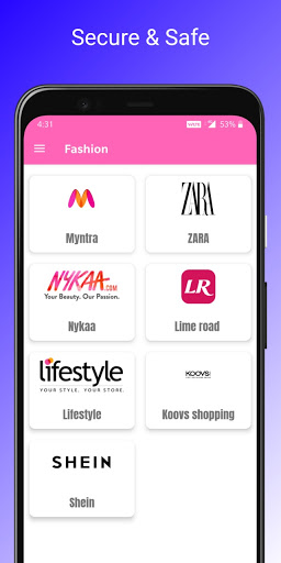 This all in one shopping app is 100% SAFE and SECURE and Risk Free way to shop on your favorite website through this app. This app never collects user information. Only the official websites of the respective online shopping