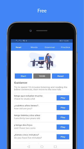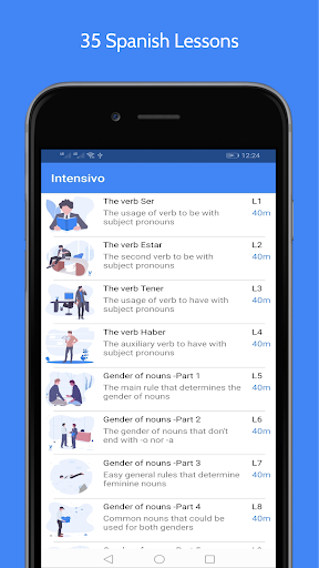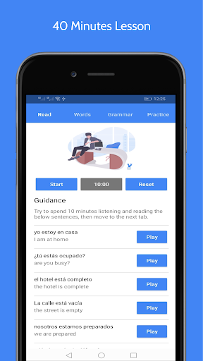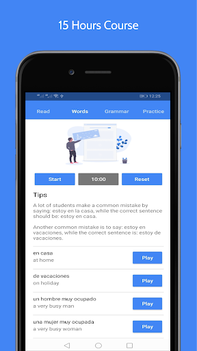 ▪ Our App contains 35 Offline Basic Audio Lessons to learn Spanish, These Lessons come into 4 Sections or 4 Tabs, they work totally Offline and designed especially for Beginners; you should spend 10 minutes on each Tab to learn how to speak Spanish, read it,