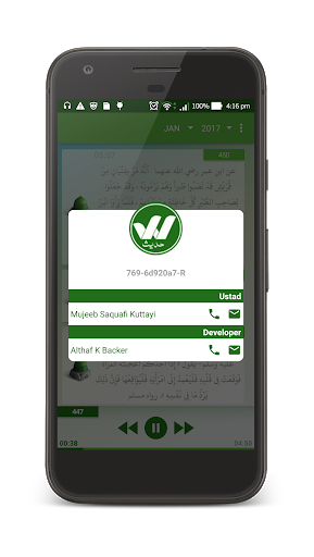 Wisdom Hadees Player application is humble effort of compiling wisdom hadess classes by respected Ustad Mujeeb Saquaf Kuttayi. Wisdom hadees classes are daily audio lectures which combines both fiqh and hadees study in a balanced way. Application is capable daily updating itself with lastest classes without user intervention. Audio classes are streamed to the devices, as result no audio file is stored. Main intent is to allow any one with internet connection to hear these classes any time any where in the world.