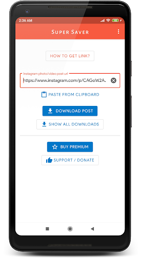 Step 2: Open Super Saver - Download Instagram photos & videos, paste the link & click download