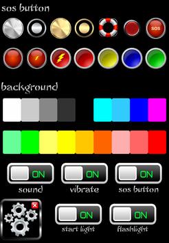 Shake your smartphone or tablet to switch the LED flashlight on or off. You can also use the On and Off buttons to switch or the flasher button to blink. The shake flashlight will light quickly and very bright. You can make the LED flashlight to your favorite colors, designs and settings, if you click on the gear button: