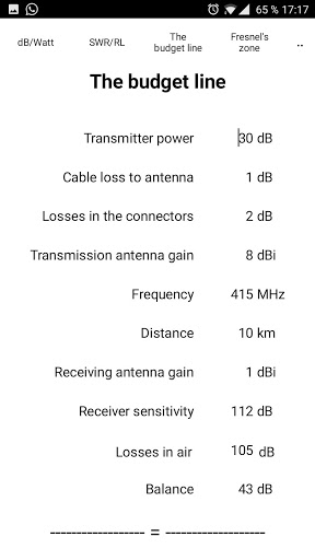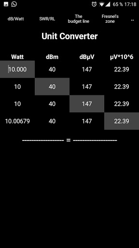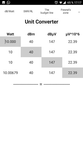 - to translate different units of power (Watt, dBm, dBµv, µv),