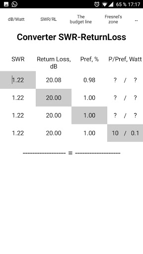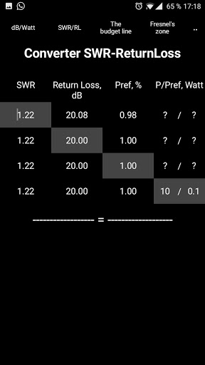 - convert VSWR, Return Loss, P/Pref, Rref %,