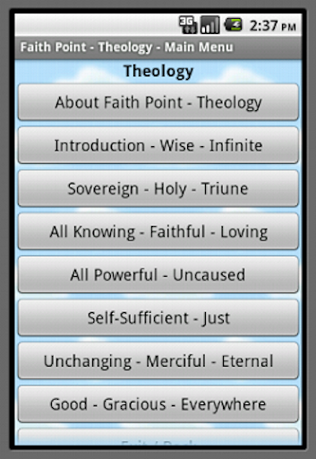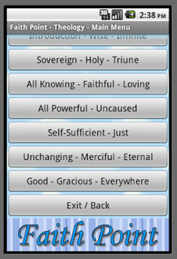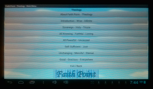 Faith Point - Theology is an Android Application that helps people to better understand what the Bible says about who God is and what He is like.