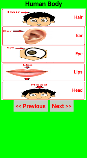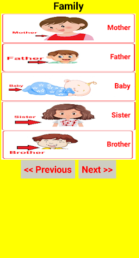 موضوعات انجليزية للأطفال - 1 هو تطبيق بسيط وسهل الاستخدام. الضغط على الأزرار التي تظهر فيها الصور سوف تلعب صوتا في اللغة الإنجليزية حيث سيسمع المستخدم وربما ربط نفسه عن طريق صورة الشكل بسيطة وبعد