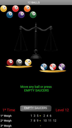 To achieve this, we have a small scale with two saucers, and we can only weigh out three times.