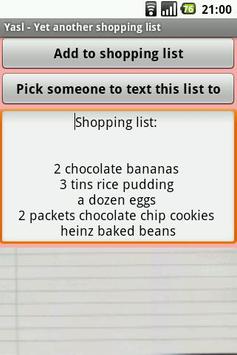 Yasl is a very simple app that will let you speak a list of items you need, it will write them down and let you pick someone to text the shopping list to. Handy if you're busy and can't get to a shop before they close, you can just ask a friend :o)