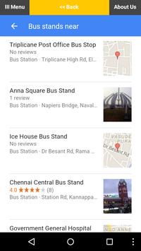 "Bus Stands Finder" allows you to Find Bus Stands Near You, where ever you are & which ever place you are! It Makes use of GPS to provide you better location services. It is Integrated with Google Maps!