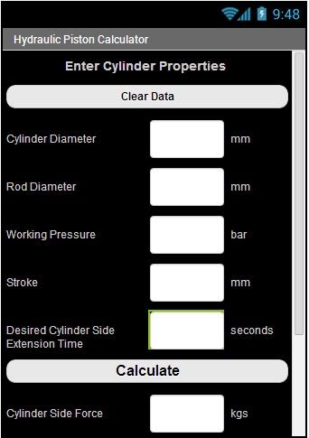 A handy and simple program, calculating hydraulic piston forces, pump flow and motor power.