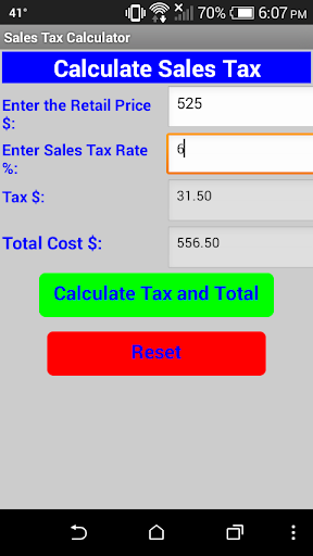 You need to enter retail price of item you are going to buy and tax rate of that country, states or provinces. When user presses "Calculate Tax and Total" button, it shows the tax amount on that item and the total amount of transaction including tax. Pressing "Reset" button user will clear all the data entered and shown in the fields.