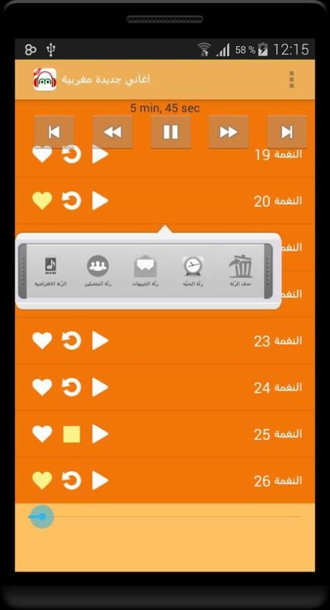 في هذا التطبيق تجد العديد من الاغاني والانغام والالحان المغربية من مختلف الاشكال الموسيقية، شعبي، كناوة، راي مغربي، راب مغربي، الطرب الاندلسي، الملحون، ناس الغيوان، انتا معلم، لغزال فاطمة، شدى الالحان، اغاني زمان، موسيقى كلاسيكية، طرب اصيل، منوعات اغاني مغربية، اغاني حزينة، رنات رومانسية هادئة، اغاني متنوعة.