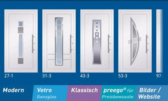 Wählen Sie Ihre Wunschhaustüre aus fast 100 Bestsellern und Neuheiten der vier Design-Linien Modern, Vetro (Glasfüllungen), Klassisch und preego® (die preisbewusste Produktlinie).