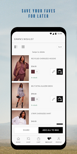 • Wishlist – when you're in a rush and want to bag that hot new outfit later.
