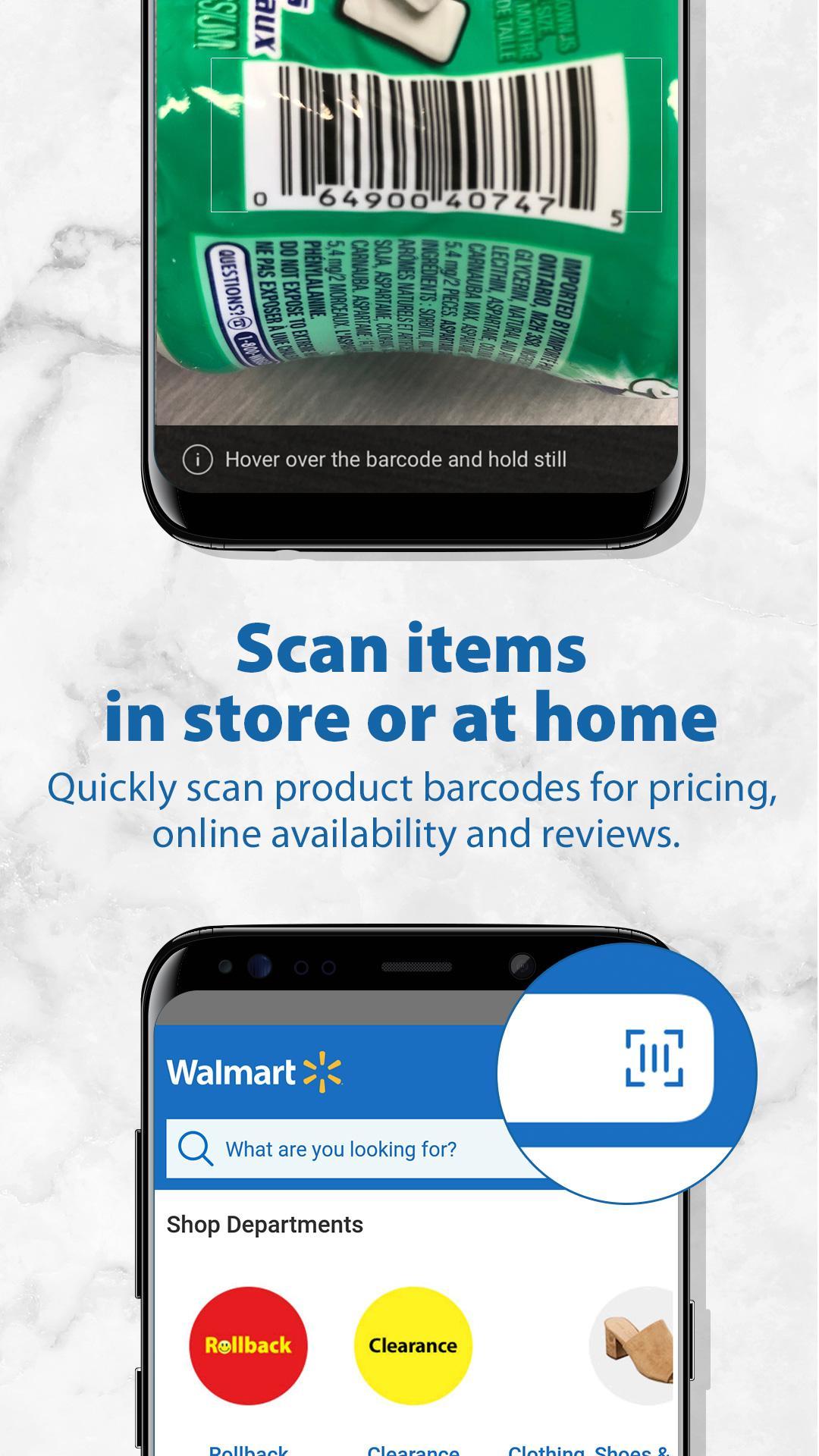 And whether at a Walmart store or in the comfort of your own home, use the app’s scan feature to capture barcodes and find pricing, online availability and reviews.