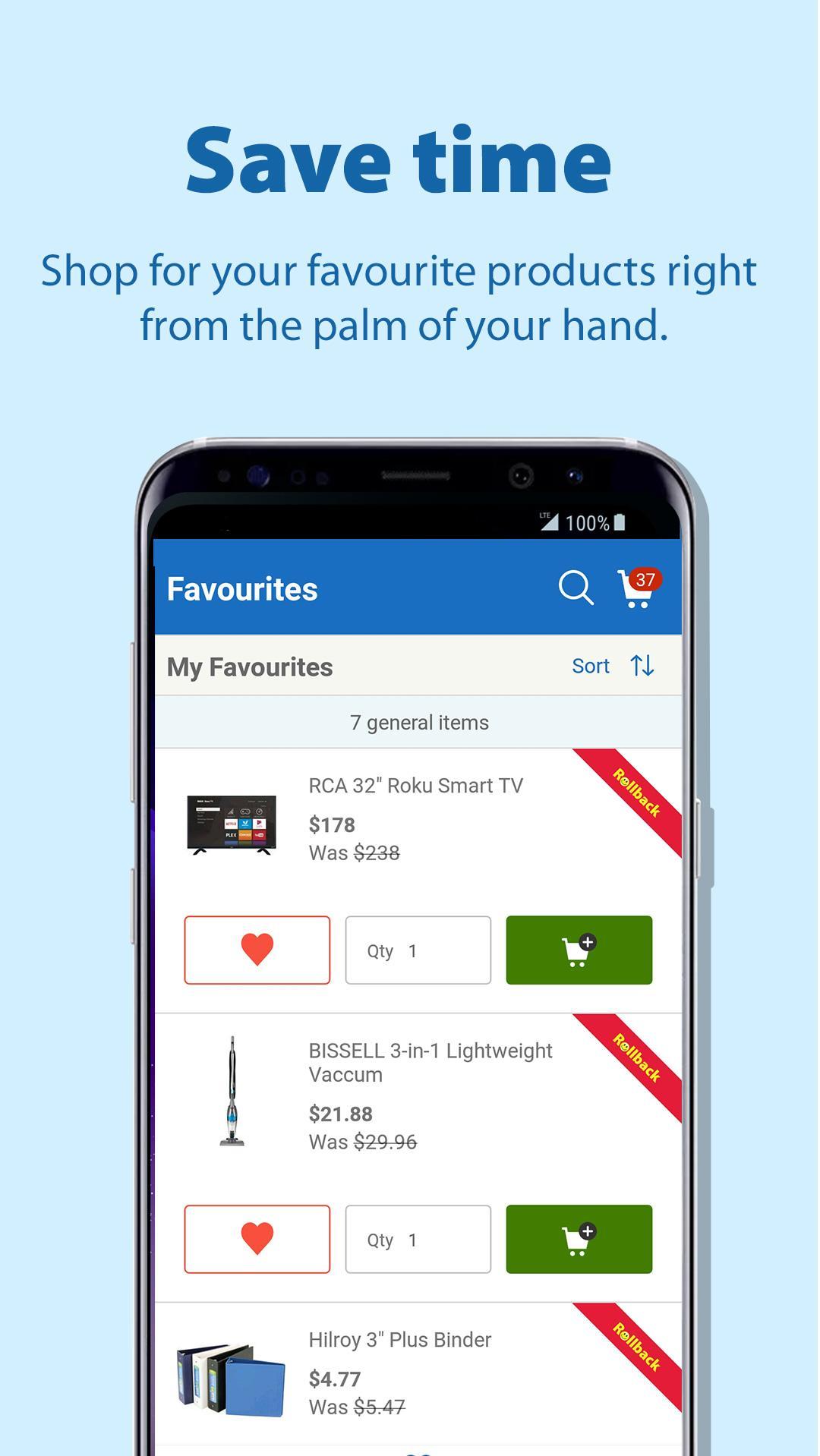 Looking to save? Get Rollback notifications on your mobile device and find out instantly when your favourite products drop in price. Find more deals by browsing your weekly flyer and get fast access to your favourite products, organized in an easy to use list on-the-go.