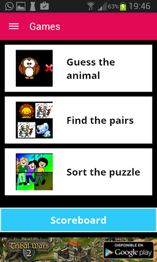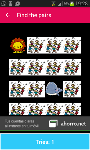 Cool Songs and Games is the best FREE app for Android (4.0 ) to play and listen songs in English and play minigames (find pairs, puzzle 8, puzzle 9 and guess the animal).